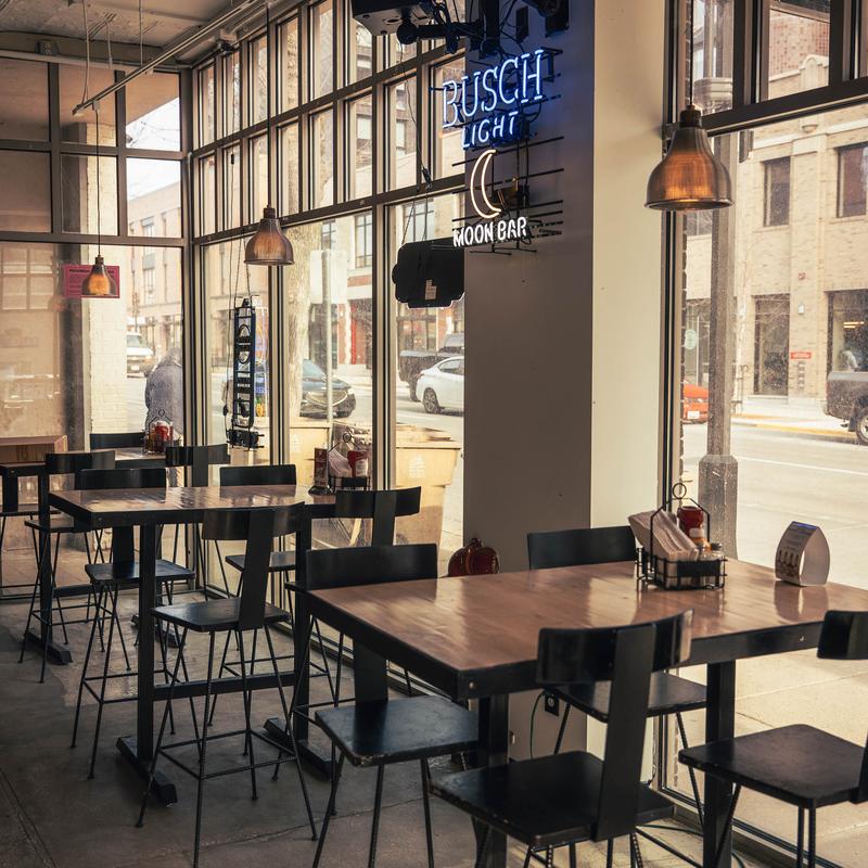 Can't recommend enough if you're looking for locally owned American eats and/or a few drinks! The service was great and super friendly, the bar was very nice. The natural lighting was beautiful and the place felt a lot bigger than it should, they even have stages for live music and said they plan to have local bands. They were nice enough to show me a large beautiful upstairs area that's available to rent out with a stage and DJ booth. I had the morning burger, and it was fantastic. A good portion for the price and it came out quickly. This place is great if you're gluten-free as well! Almost everything on the menu is available gluten-free.